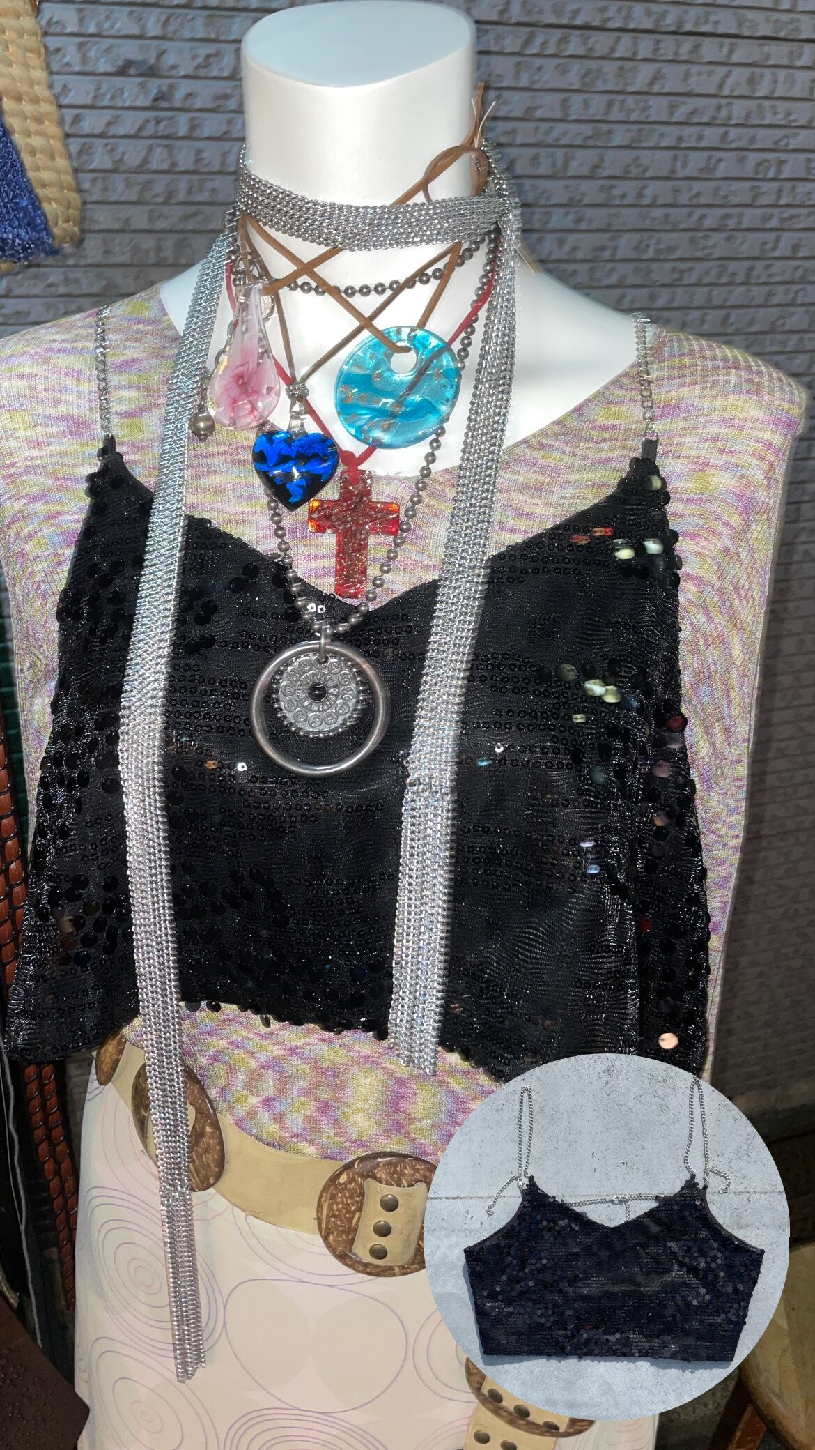 サイズ: Free 素材:polyester100% 肩幅:23cm 身幅:40〜50cm (調整可能) 着丈:35cm (調整可能) 【POINT】 •チェーンで着丈と身幅を調整できます •レイヤードにもオススメ 品番/ ※ used&vintage商品になりますので使用感やダメージがある事をご理解して頂けると幸いです。 大変申し訳ございませんが返品はお受けできませんのでよろしくお願いします。