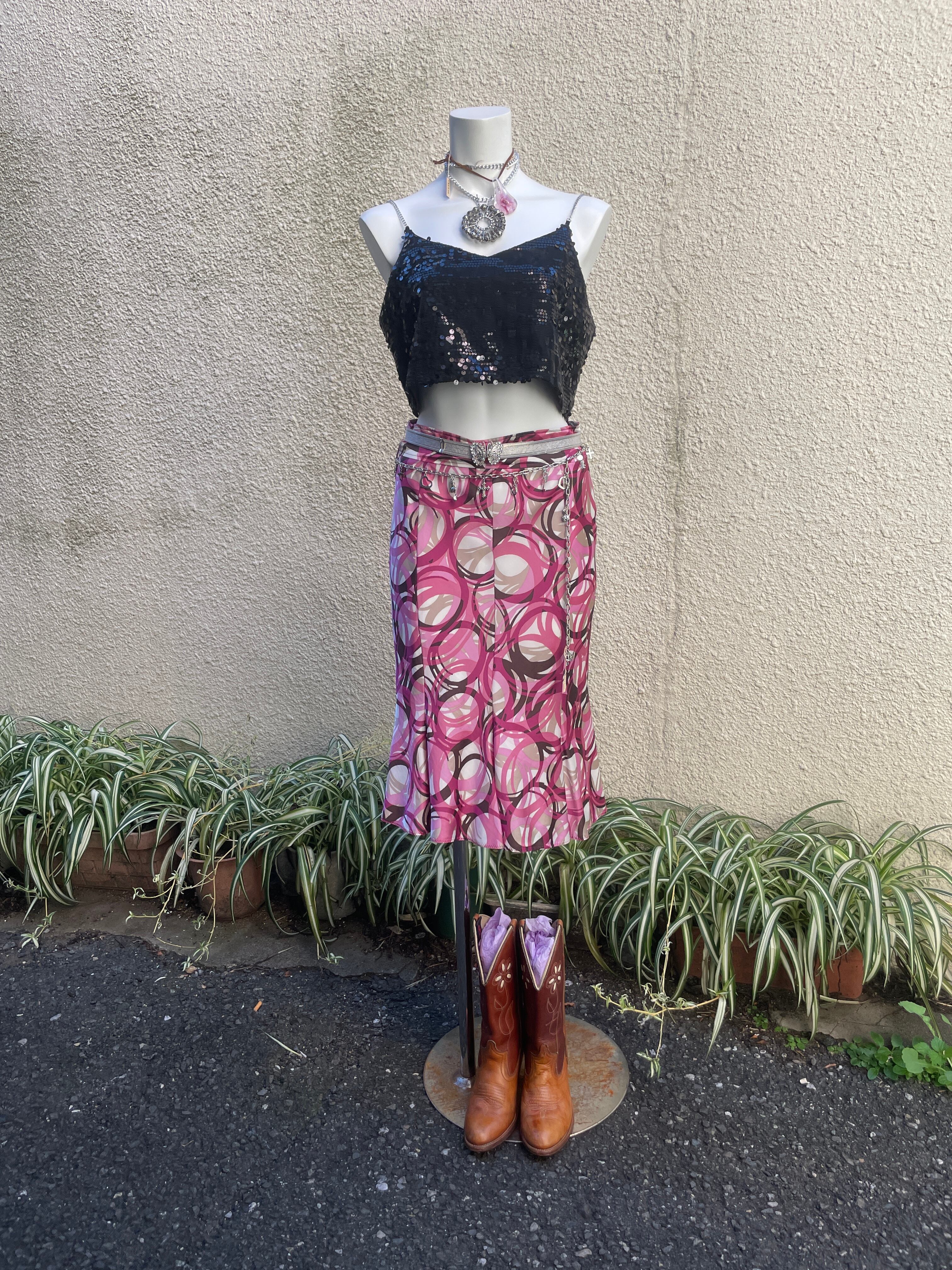 サイズ:38 素材 : polyester 100% ウエスト: 75cm ヒップ:38cm スカート丈 : 62cm 【POINT】 •生地に光沢があって綺麗 •ヴィンテージならではのデザイン 品番/ ※ used&vintage商品になりますので使用感やダメージがある事をご理解して頂けると幸いです。 大変申し訳ございませんが返品はお受けできませんのでよろしくお願いします。
