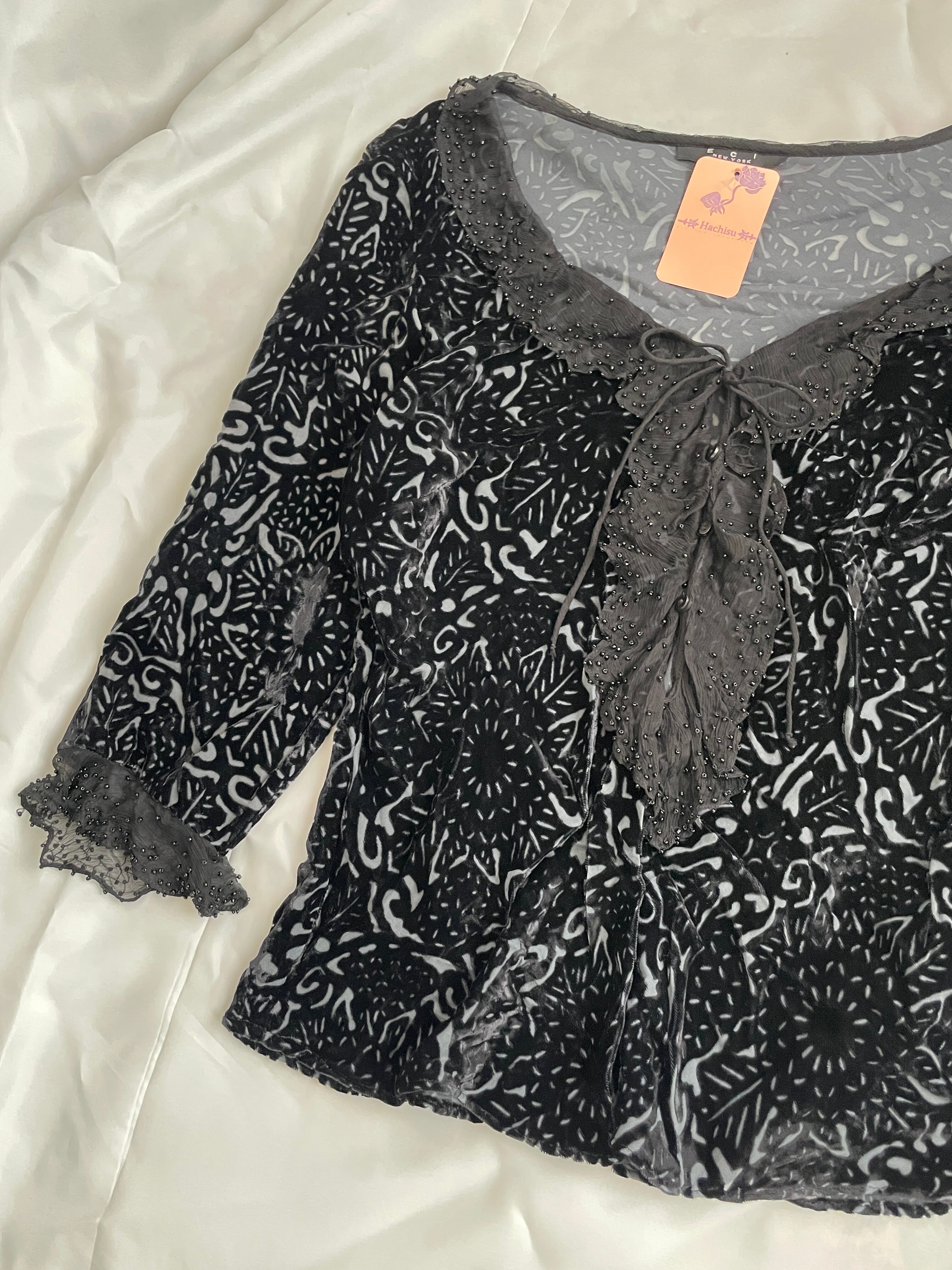 00s VTG velours sheer long sleeve tops