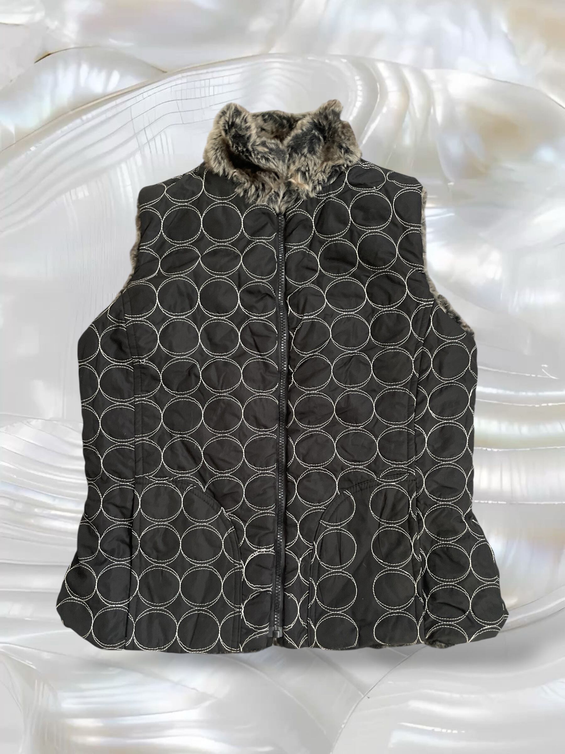dots embroidery fake fur vest