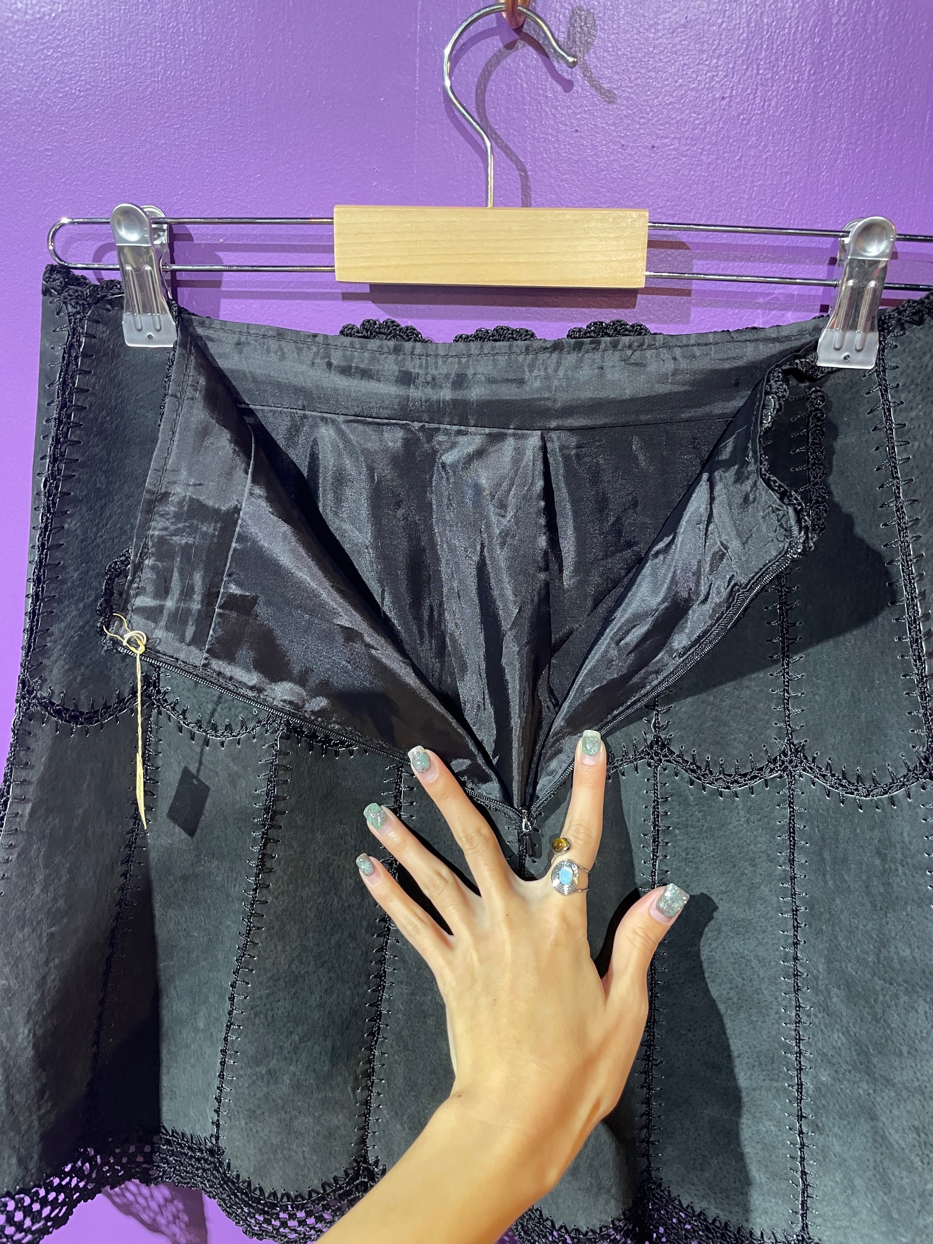 サイズ:M (サイズ表記なし) 素材 : leather 100% / polyester 100% ウエスト: 74cm ヒップ:88cm スカート丈 :46cm 品番/38 ※ used&vintage商品になりますので使用感やダメージがある事をご理解して頂けると幸いです。 大変申し訳ございませんが返品はお受けできませんのでよろしくお願いします。