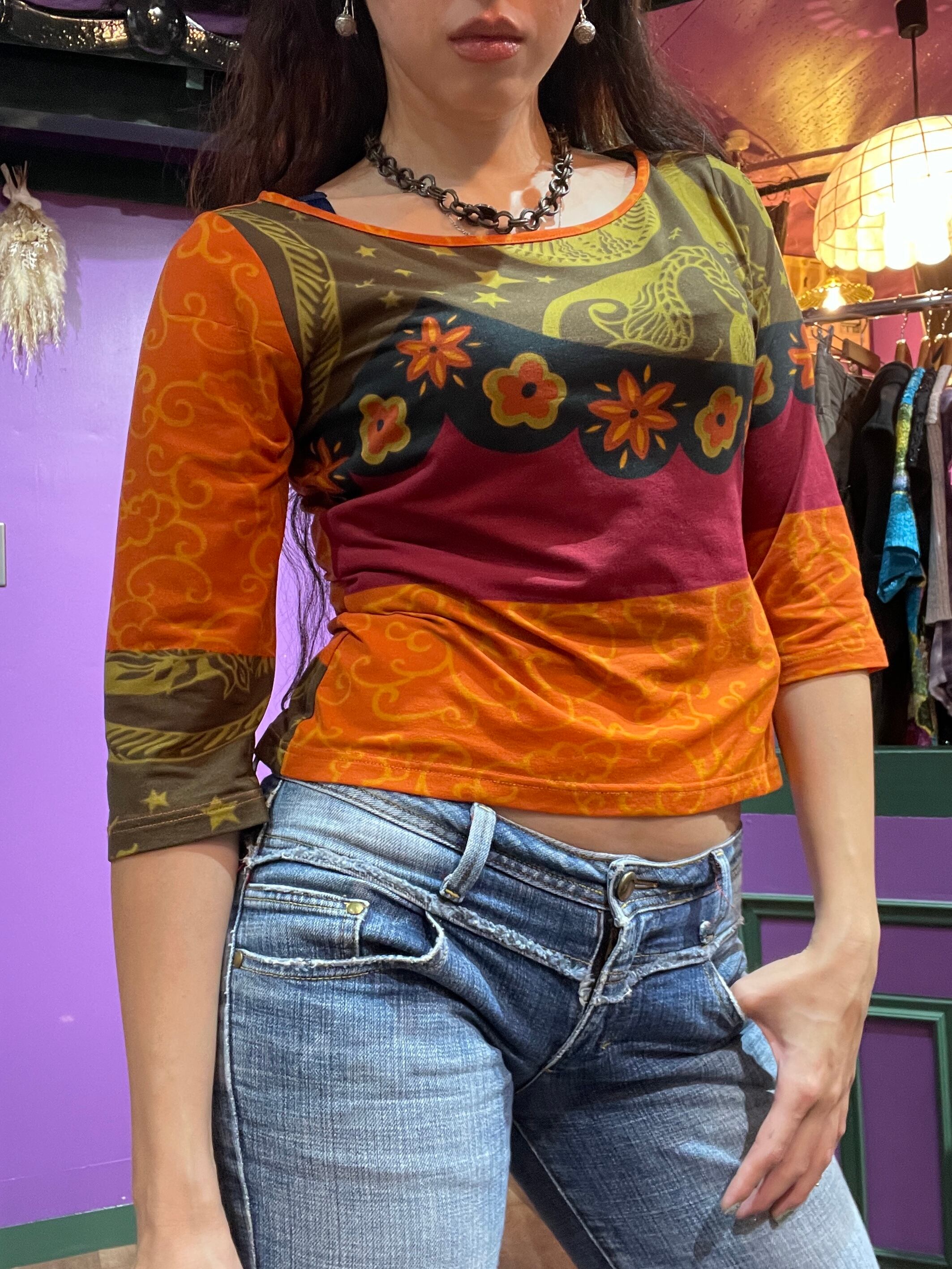 サイズ: M 素材:polyester 100% 肩幅:39cm 身幅:46cm 袖丈:42cm 着丈:48cm Made in Spain 【POINT】 •襟の空が広め29cm •星座のような柄が可愛い •キャミやワンピのインナーに便利 品番/680 ※ used&vintage商品になりますので使用感やダメージがある事をご理解して頂けると幸いです。 大変申し訳ございませんが返品はお受けできませんのでよろしくお願いします。