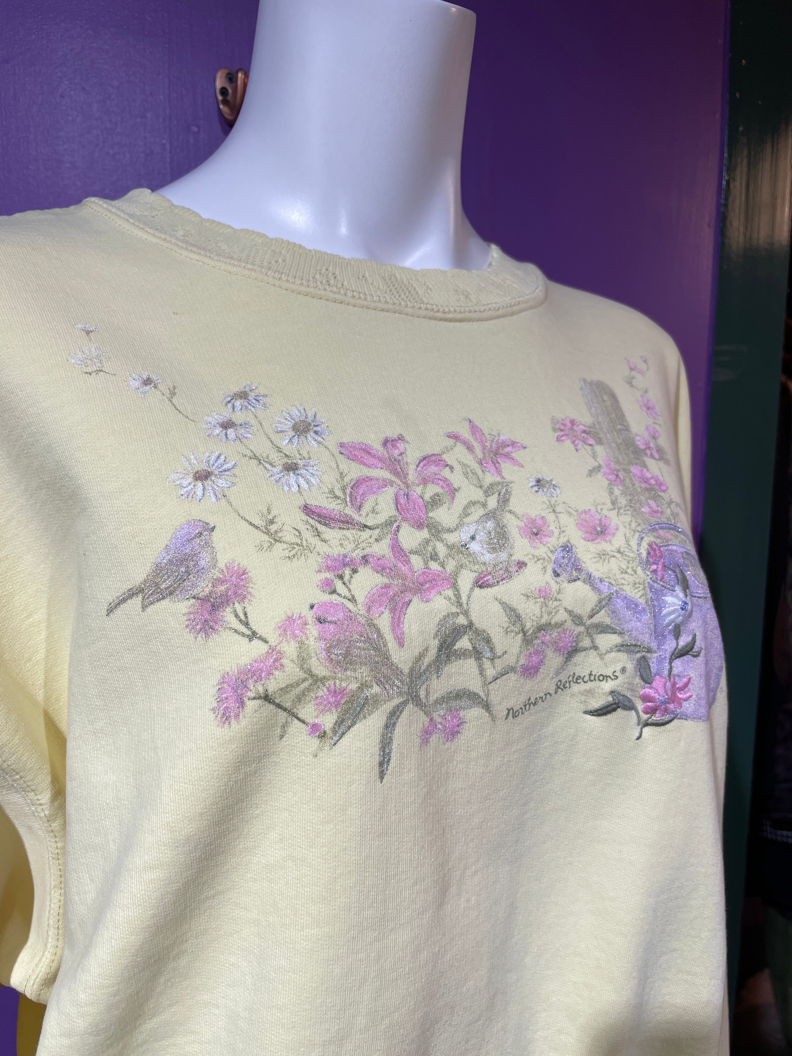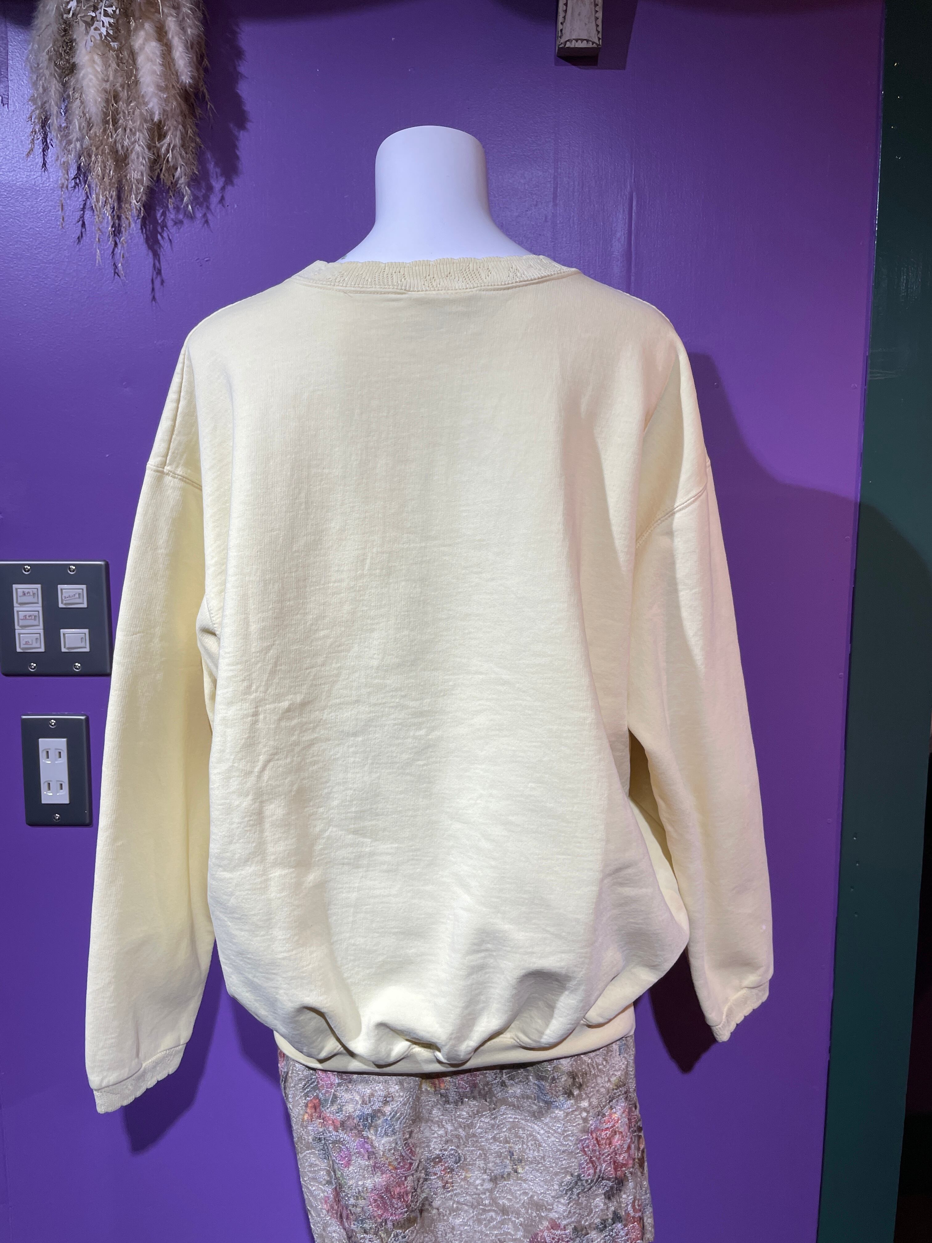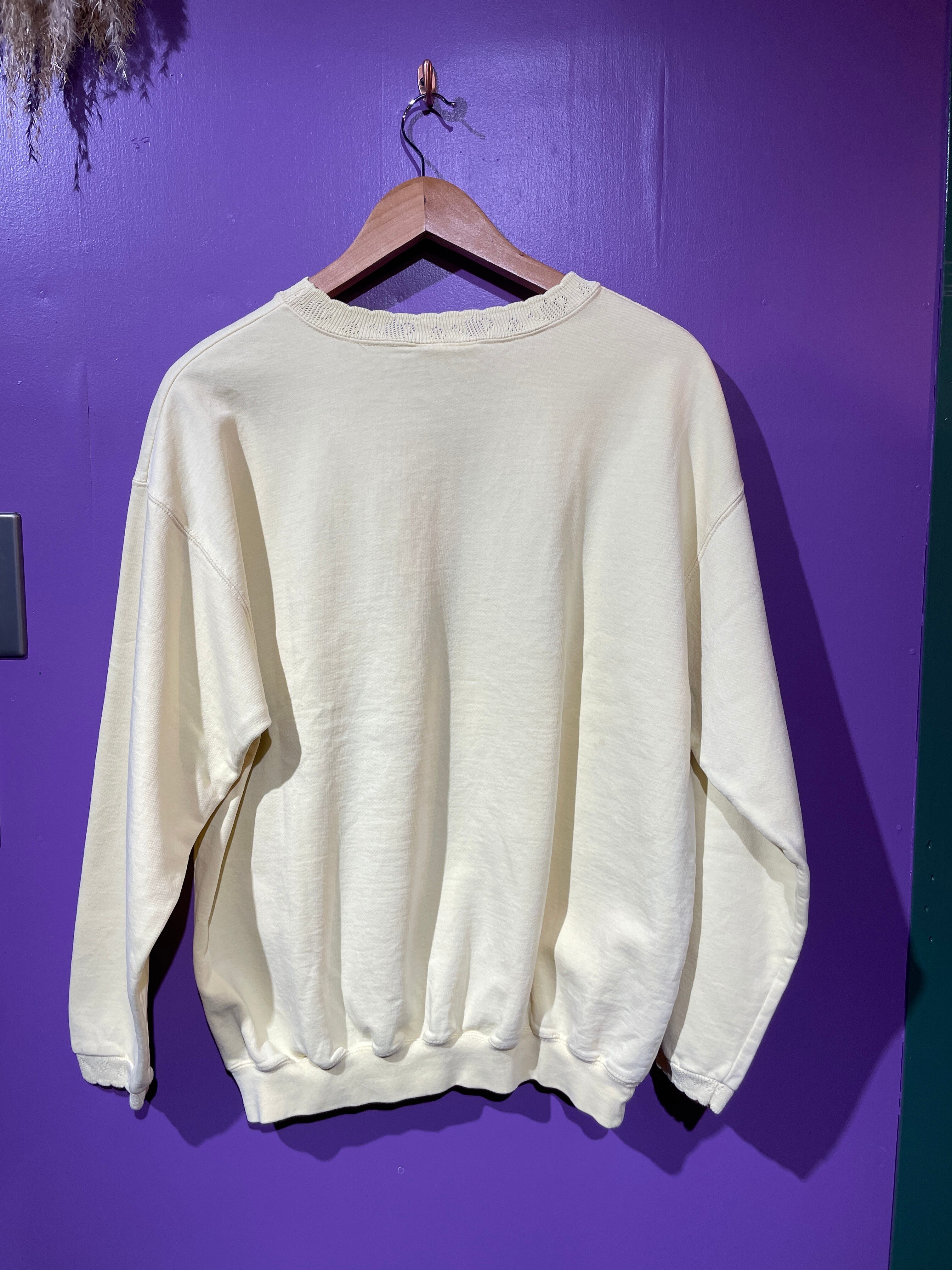 サイズ: M-L (サイズ表記なし) 素材:cotton100% 肩幅:59cm 身幅:56cm 袖丈:50cm 着丈:62cm 【POINT】 •衿と袖口のレースが可愛い♡ •大きめなのでオーバーサイズにコーディネート⭐︎ •胸元の柄がラメ入りなのが推しポイント! 品番/474 ※ used&vintage商品になりますので使用感やダメージがある事をご理解して頂けると幸いです。 大変申し訳ございませんが返品はお受けできませんのでよろしくお願いします。